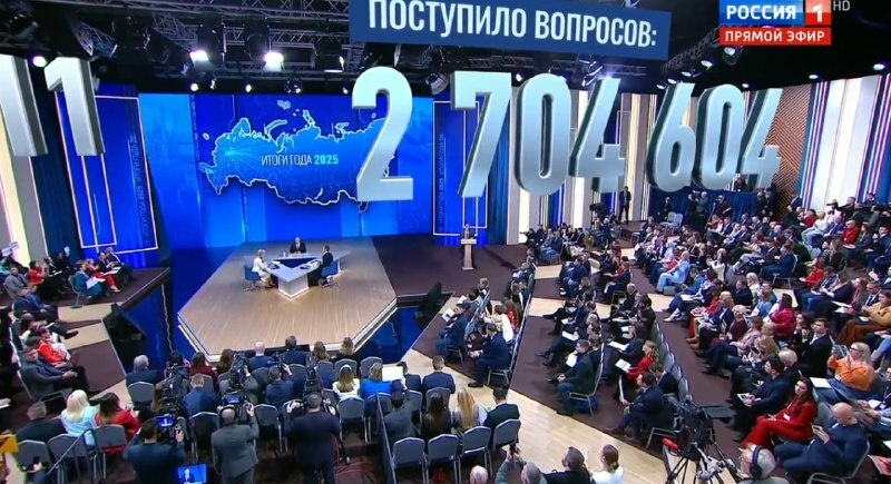 Рост валового внутреннего продукта (ВВП) России в текущем году составил 1%, но за три года он достиг 9,7%, сообщил российский президент в ходе Прямой линии, совмещенной с пресс-конференцией. В это же время рост ВВП в Еврозоне составил 3,1%, отметил Владимир Путин. — Снижение темпов роста ВВП — это результат осознанного совместного решения правительства и Центрального банка в борьбе с инфляцией. К концу года она должна составить 5,7-5,8%, — рассказал президент. Фото: скрин прямого эфира