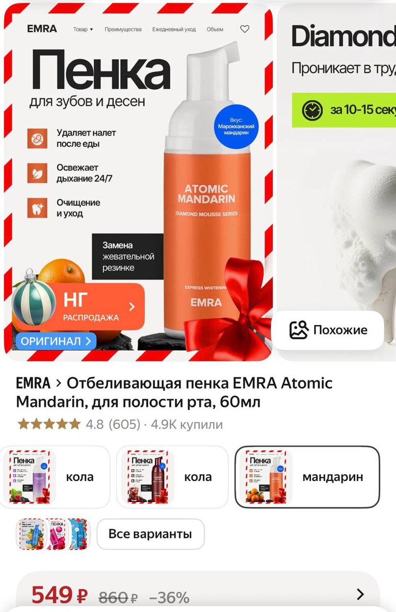 Отбеливающая пенка EMRA Atomic Mandarin, для полости рта, 60мл