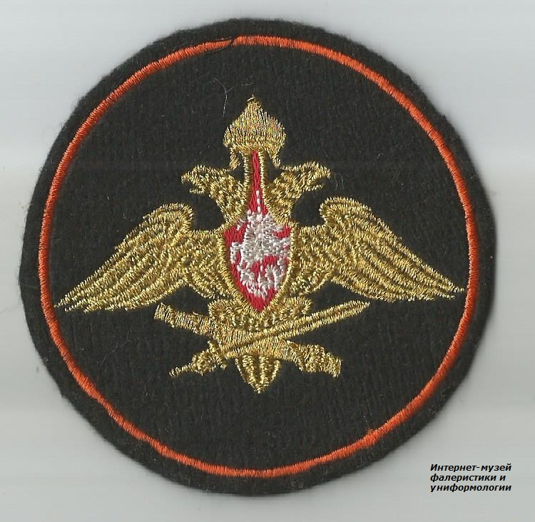 Представляет собой тканевую нашивку в форме круга черного цвета с кантом оранжевого цвета. В центре знака - изображение средней эмблемы Генерального штаба ВС РФ (золотой двуглавый орел с распростертыми крыльями, держащий в правой лапе золотой меч, а в левой - золотой маршальский жезл; на груди орла - красный, треугольный, вытянутый книзу щит со штоком, восходящим к золотому шлему; в поле щита - всадник, поражающий копьем дракона). Погоны подполковника военной полиции для повседневной ("офисной") формы одежды образца 2015 года.