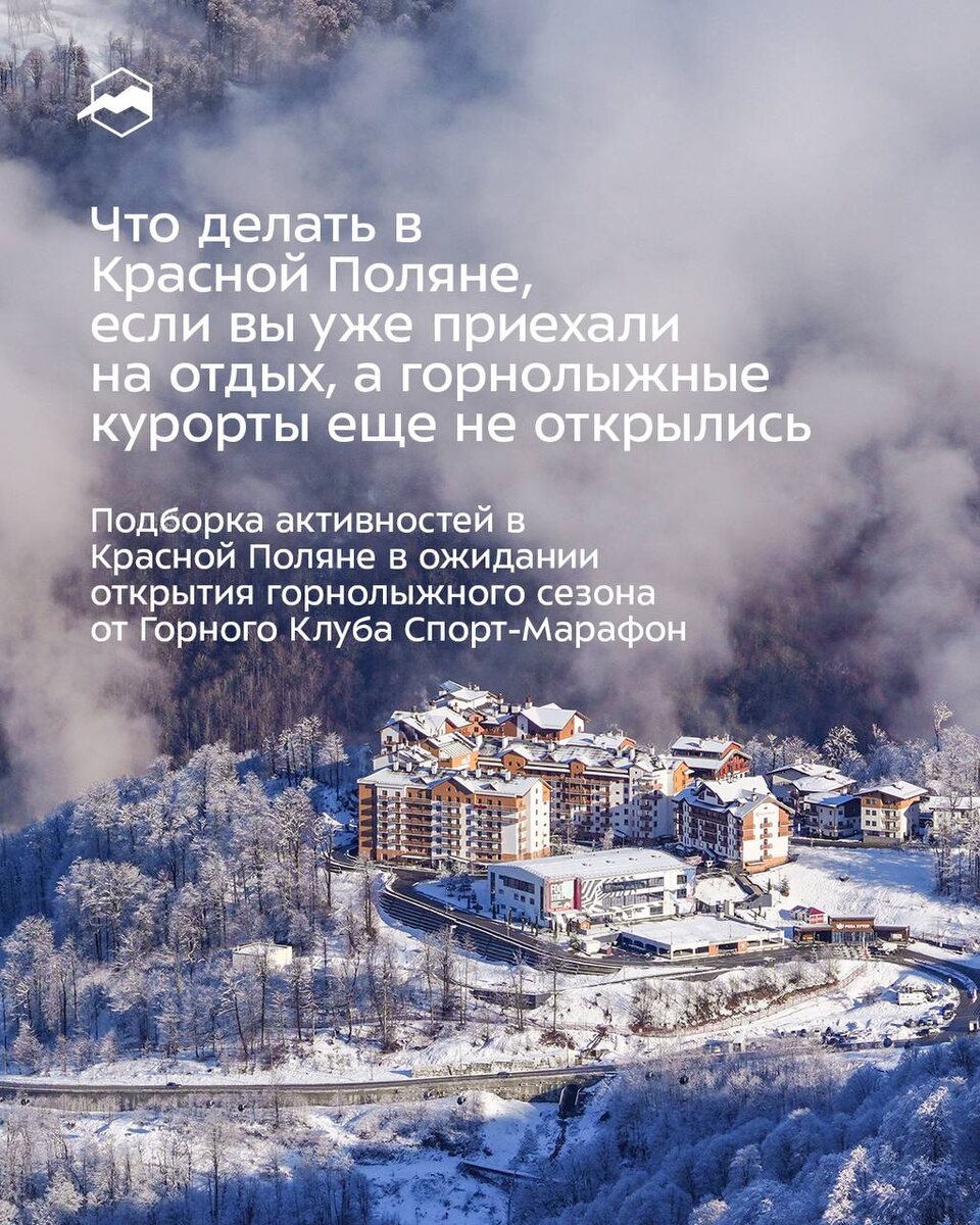 ? Из-за отсутствия снега и переноса открытия горнолыжных курортов многие гости уже приехали в горы Красной Поляны, но привычные зимние активности пока недоступны. В подборке мы предлагаем альтернативу — насыщенный, яркий и запоминающийся отдых в горах, который легко включить в ваши программы. ☝🏼 Все активности можно организовать в даты по вашему запросу, а также индивидуально под вашу группу. 📩 Для бронирования и вопросов пишите @kpmountainclub_admin