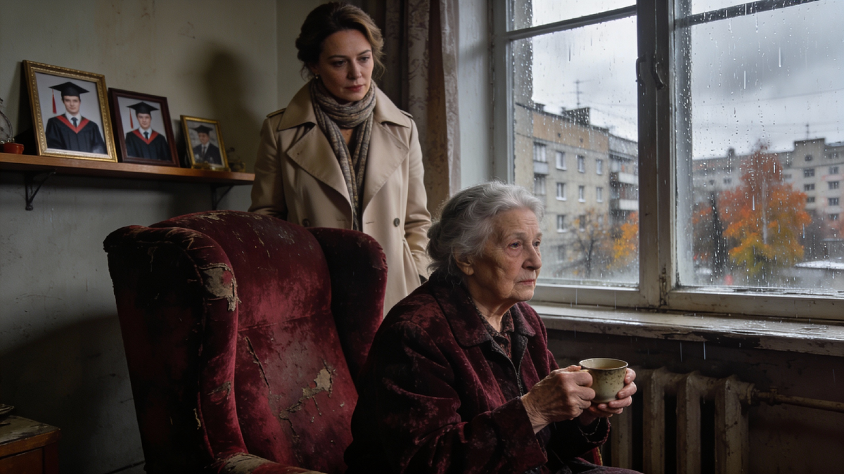 Запах старых книг и лекарств всегда встречает меня в прихожей Ирины Петровны. Это специфический аромат угасания, который не может перебить даже дорогой французский парфюм «Chanel No. 5», который я привожу ей каждые полгода просто по привычке. Это единственная нить, связывающая её с прошлым, где она была королевой. Теперь она сидит в кресле у окна — всегда в одном и том же, бархатном, с потертыми подлокотниками, цвета пыльной розы. Это единственная вещь, которую нам удалось спасти, когда судебные приставы выносили мебель из её трёхэтажного особняка в Серебряном Бору. Остальное — антикварные комоды, персидские ковры, коллекция фарфора — ушло с молотка за бесценок.