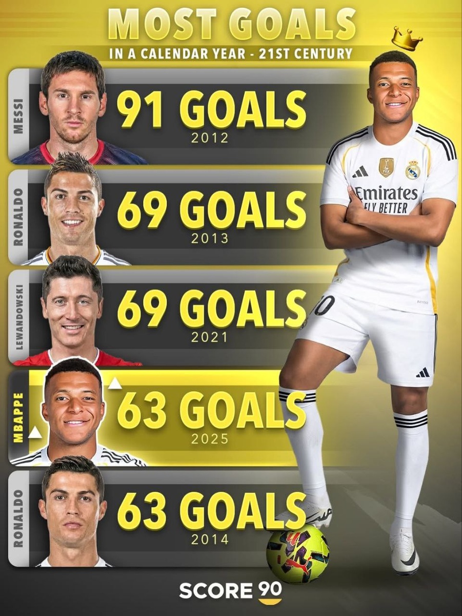 Это четвёртый результат по количеству голов за календарный год в 21-м веке.