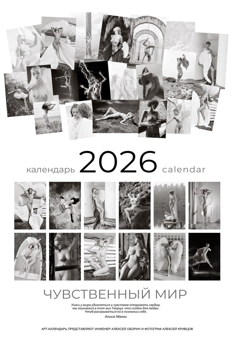 Многие знают, что у нас есть 🔥Традиционный новогодний календарь! Строго 18+ " Мой друг - Алексей Кривцов, фотограф из Санкт-Петербурга, провёл несколько удачных фотосессий и по результатам обсуждения с ним, мы отобрали самые интересные фото. Календарь в этом году получился настолько интересный, что автор решил добавить на обложку знак 18+, как говорится от греха подальше :) " За 15 лет издательства календаря мы не ставили себе цель заработать на этом, так подарок становился только ценнее. Однако, ВПЕРВЫЕ небольшая часть календарей будет продана, желающие купить - пишите на почту oborin@procion.ru. Сейчас тираж ещё проверяется, сборка и отправка будут примерно через неделю. Кто захочет увидеть больше, в том числе фотографии не вошедшие в календарь или видео со съёмок, может перейти на ресурсы Алексея Кривцова, по ссылкам: https://vk.com/krivtsovalex https://t.me/alexkrivtsovphoto/500 https://boosty.to/alexkrivtsov С наилучшими пожеланиями, директор ООО "Процион" Алексей Владимиров