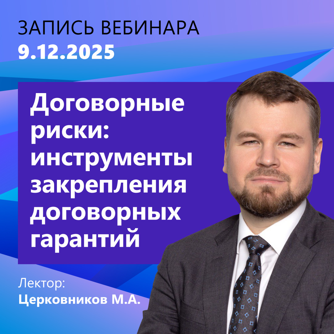 В первой части вебинара, проведенного КонсультантПлюс 09.12.2025, лектор расскажет, какие договорные гарантии контрагентам предлагает законодательство. В чем их отличия от законных гарантий. Как высшие суды толкуют нормы ГК РФ. Вебинар провел Церковников Михаил Александрович, доцент кафедры обязательственного права Исследовательского центра частного права имени С.С. Алексеева при Президенте РФ, кандидат юридических наук. Смотреть видеоролик в КонсультантПлюс ⏩