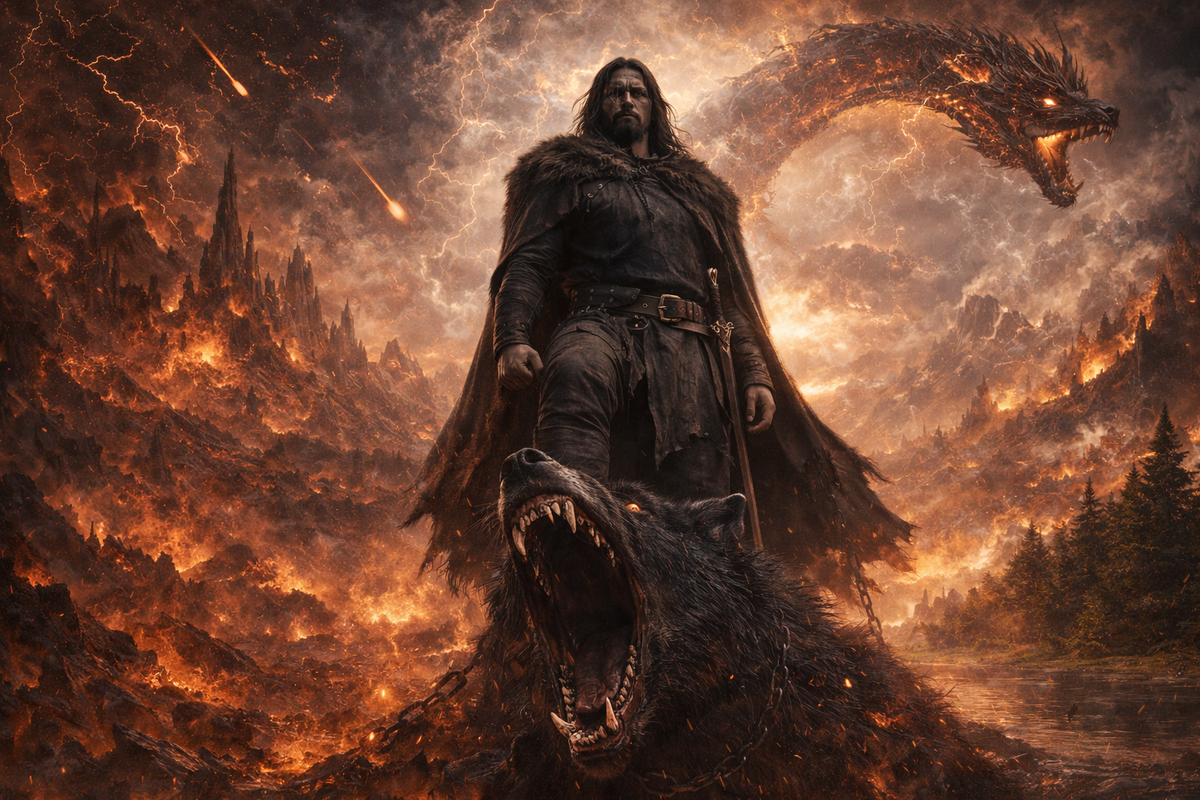 Фенрир — не просто чудовище. Он — фигура неизбежного разрушения. Волк, выросший среди богов, но не принятый ими. Его связывают, обманывают, калечат — и тем самым делают его тем, кем он становится.