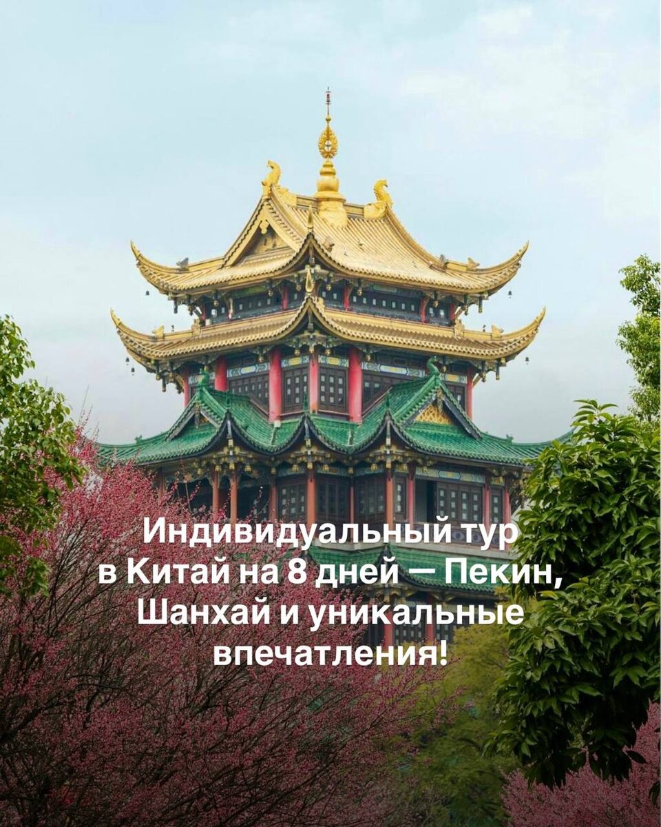 ! 🗓️ Даты тура: 21.04 – 28.04 (8 дней) ✨ Особенности тура - Индивидуальный тур с русскоговорящими гидами. - Переезд между Пекином и Шанхаем скоростным поездом (2-й класс). - Проживание в комфортных 4★ отелях (Xinqiao Hotel в Пекине, Ocean Hotel в Шанхае). - Все входные билеты, питание по программе и трансферы включены. - Есть возможность расширить программу, добавив Сиань, Гуанчжоу или круиз по реке Ли. - Безвизовый въезд для граждан России. - Весна — оптимальное время для путешествия по климату и событиям. 🗓️ Программа по дням - День 1: Прилет в Пекин, трансфер в отель, отдых. - День 2: Зоопарк с пандами, Великая Китайская стена, традиционный обед, по желанию — Пекинская опера или цирк. - День 3: Императорский дворец Гугун, прогулка по исторической улице Дашилань. - День 4: Переезд на скоростном поезде в Шанхай, размещение в отеле. - День 5: Посещение Храма Нефритового Будды, обзорная экскурсия с подъемом на Шанхайскую башню. - День 6: Полный день в Shanghai Disneyland (вход и