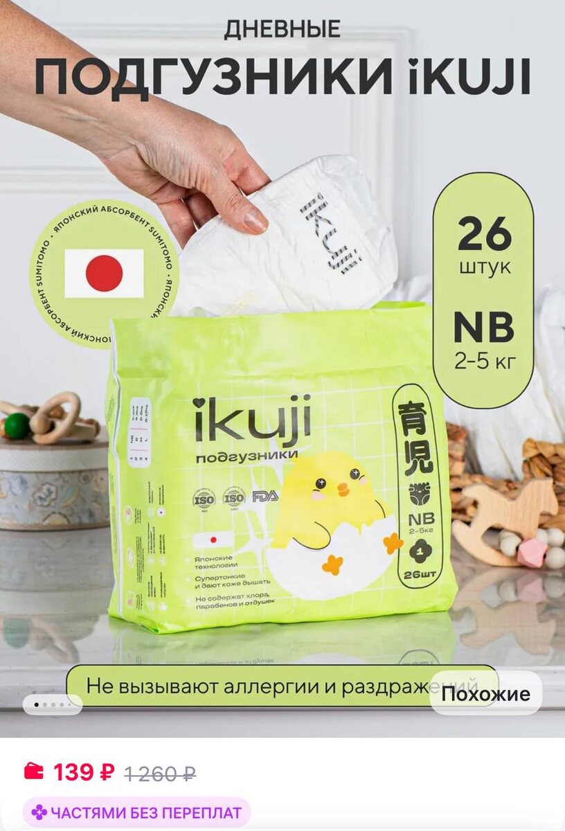 IKUJI Подгузники для новорожденных 1 размер NB 2-5 кг 26 шт