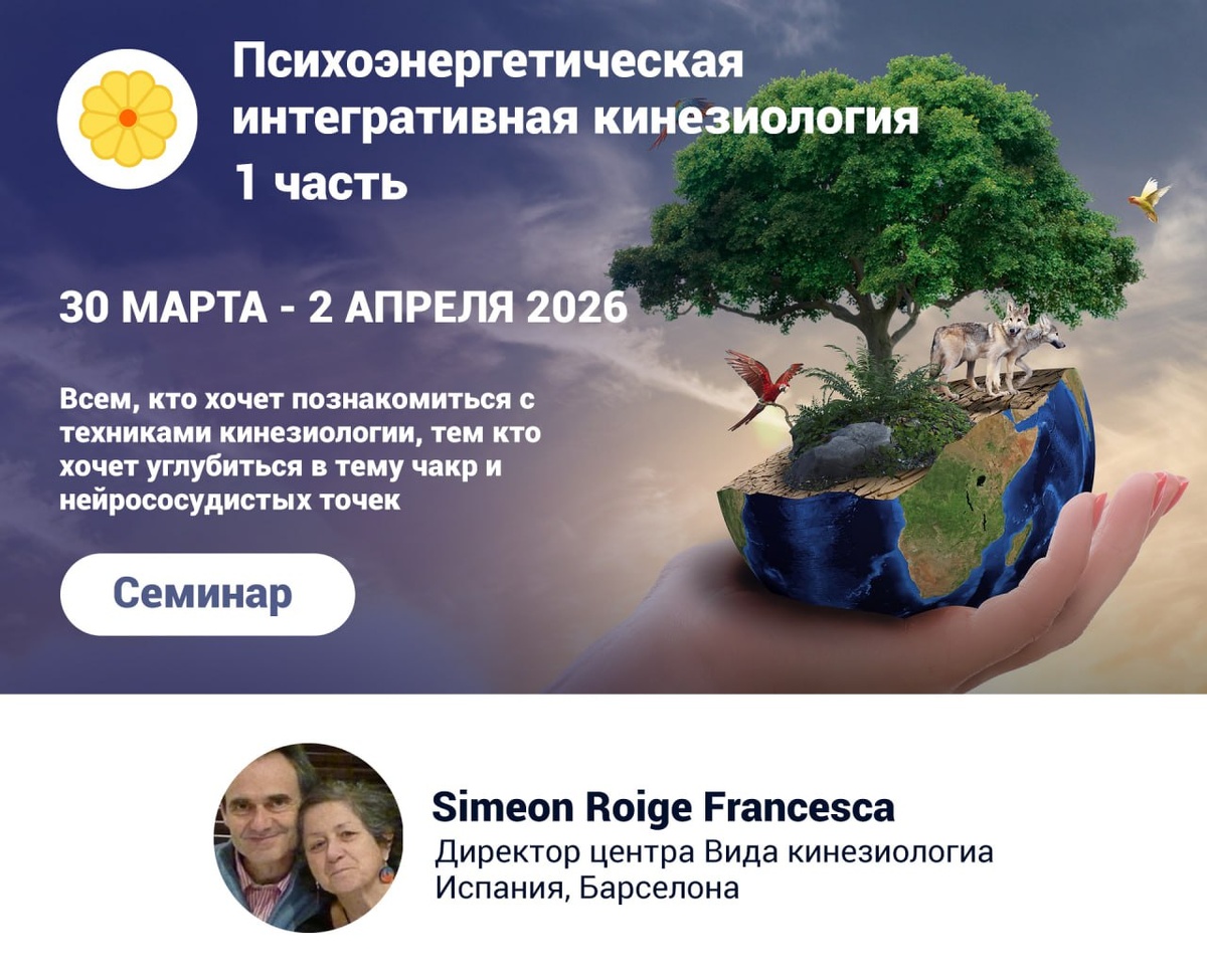 !🌿 Приглашаем на семинар "Психоэнергетическая интегративная кинезиология - 1 часть", который будет проведен с 30 марта по 2 апреля 2026 года Семинар проведёт автор Франческа Симеон - директор центра Вида кинезиологиа. Испания, Барселона ☝️Этот семинар был создан Франческой Симеон и Хуаном Карлосом Монхе. Сейчас у нас есть уникальная возможность пройти этот семинар с автором метода 💫 Мы будем совершенно иначе работать с энергетическими центрами тела человека. Мы изучим новые нейрососудистые точки, которые не применяются в других направлениях кинезиологии Подробнее о семинаре можно узнать в личных сообщениях группы ВК или по ссылке — https://kinesioportal.ru/events/event15307.php