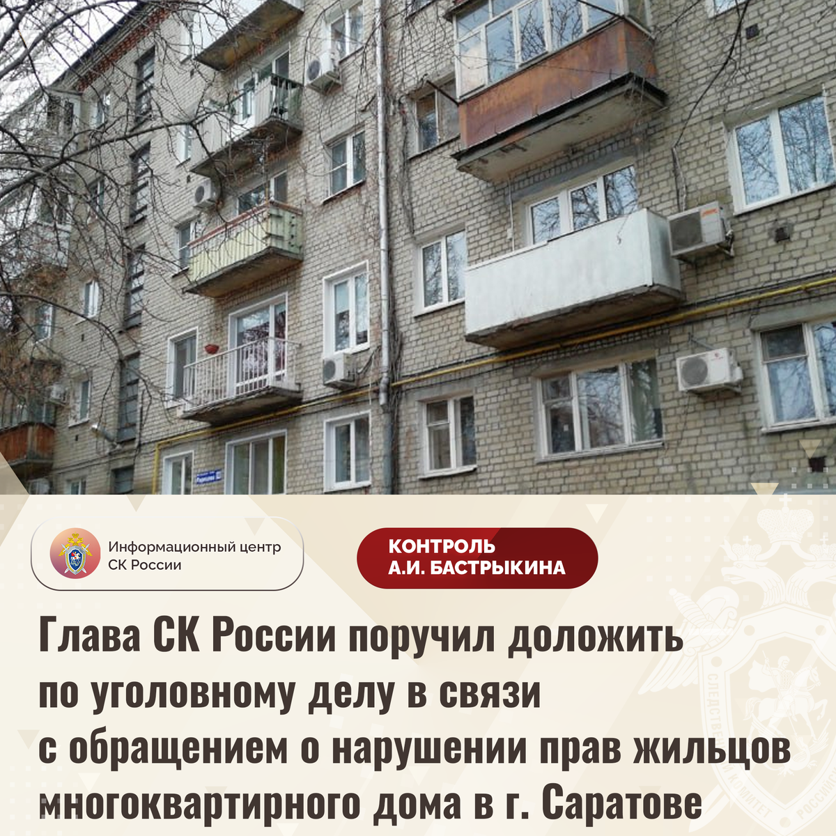 Глава СК России поручил доложить по уголовному делу в связи с обращением о нарушении прав жильцов многоквартирного дома в г. Саратове