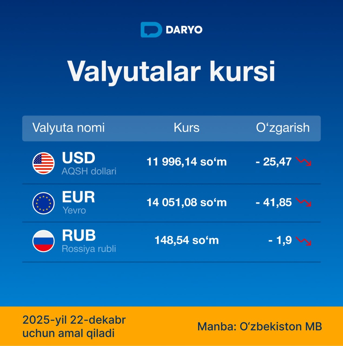🇺🇸 dollar 11 996,14 soʻm (-25,47)
