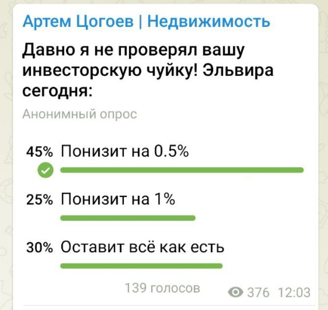☝️Большинство оказалось право! Эльвира Сахипзадовна решила не баловать нас лишний раз и теперь 16%...