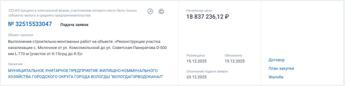 В селе Молочное подрядчик выполнит капремонт участка канализационного коллектора диаметром 500 мм и протяженностью 770 метров. Работы пройдут по ул. Комсомольской в районе перекрестка с ул. Коминтерна. Начальная цена контракта составляет почти 19 миллионов рублей. Сроки выполнения: до 19 июня 2026 года. В областном центре планируется обновление участка водопровода диаметром 225 мм и длиной 240 метров по улице Пригородной (от ул. Московской до ул. Беляева). Начальная цена — почти 7,5 миллиона рублей. Срок выполнения: по 12 июня следующего года. Финансирование — за счет средств городского водоканала. 📱 Telegram🐚📱 ВКонтакте🐚💙 Rutube