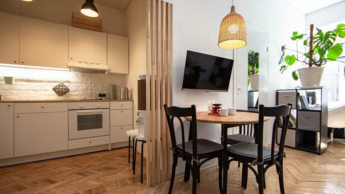 Каждая квартира — это маленькая история. Сорок метров вполне могут стать настоящим домом, если подходить с фантазией и любовью. Мы нашли баланс между стариной и современностью, бюджетом и качеством, практичностью и красотой. Здесь есть всё, что нужно для жизни: удобные рабочие места, уютная спальня, функциональная кухня и необычный санузел. И всё это сделано шаг за шагом, с уважением к прошлому.