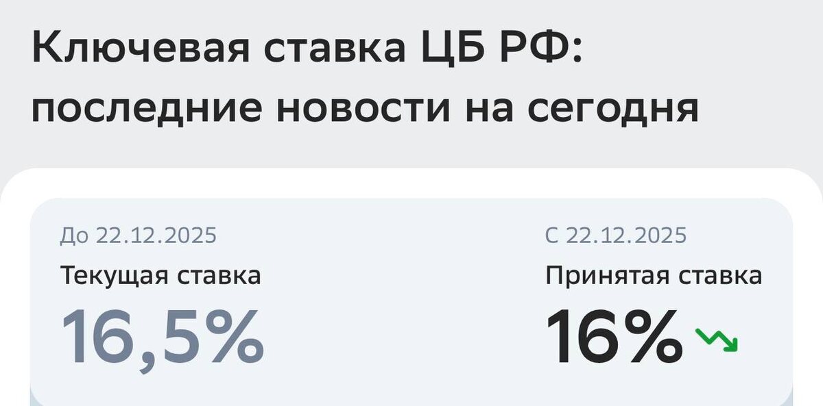 Ключевая ставка ЦБ снижена до 16%!