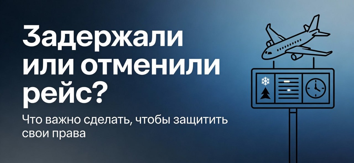 Важно не только ждать у табло, но и последовательно фиксировать нарушения ваших прав как пассажира! ❗️Первые действия 🔹Сохраните все документы: электронные и бумажные билеты, посадочные талоны, скриншоты табло и уведомлений об изменении рейса. 🔹Обратитесь к представителю авиакомпании (стойка, чат, колл‑центр) и попросите официальное подтверждение задержки или отмены рейса с указанием причины и времени. ❗️Ваши ключевые права 🔹Переоформление или возврат денег. Если рейс отменён или существенно задержан, вам должны предложить перелёт ближайшим рейсом до пункта назначения либо возврат стоимости билета с учётом условий тарифа и обязательных норм закона. 🔹Обеспечение в аэропорту. При значительной задержке перевозчик обязан предоставить питание, напитки, а при длительной задержке – гостиницу и трансфер до неё. 🔹Компенсация при вине перевозчика. Если задержка или отмена произошли по вине авиакомпании, можно заявлять требования о денежной компенсации и возмещении понесённых расходов. ❗️