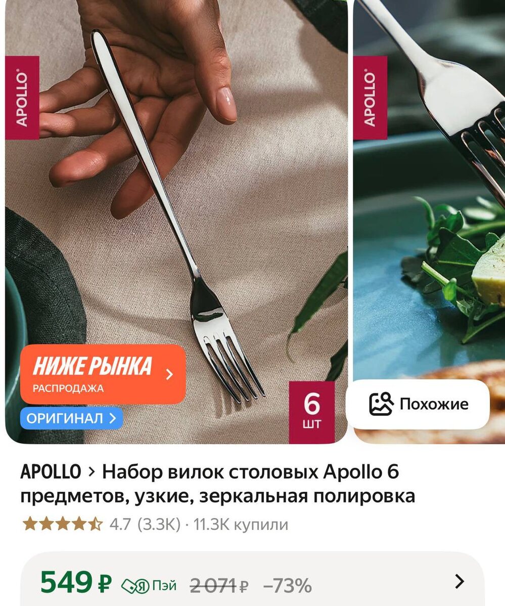 Набор вилок столовых Apollo 6 предметов, узкие, зеркальная полировка