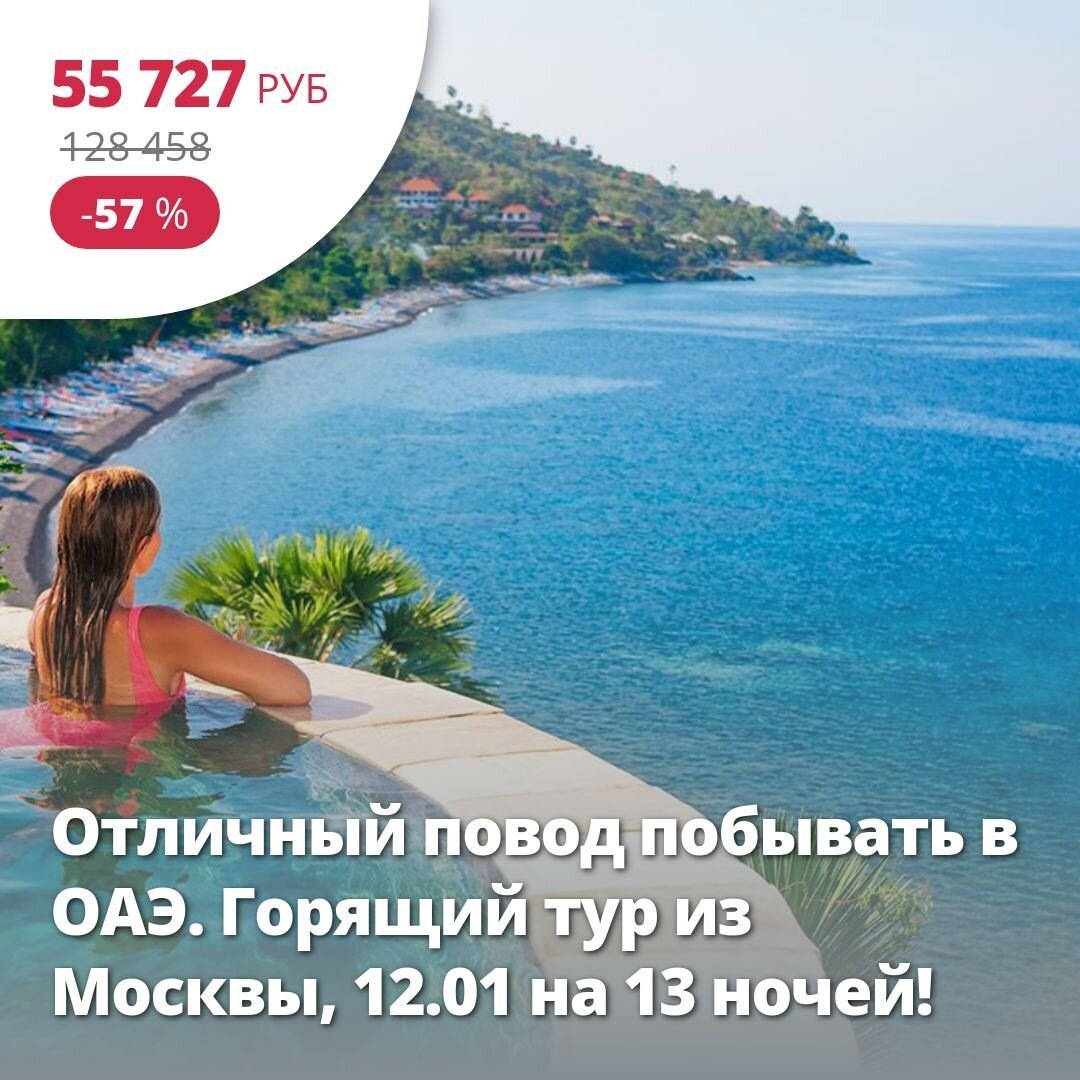 ❤ Отличный повод побывать в ОАЭ. Горящий тур из Москвы, 12.01 на 13 ночей! 🏠 5*, ОАЭ, Фуджейра из Москвы 12 января на 13 ночей. Фуджейра — самый молодой эмират. Он славится своими захватывающими дух ландшафтами: простирающимися по всей территории песчаными пляжами, омываемыми Индийским океаном, возвышающими скалистыми горами Хаджар, пальмовыми рощами. В местных отелях царит уют и провинциальная неспешность. Подробнее здесь: https://starttime.ru/search-tours?tvcard=hujnuh Лучшие туры https://starttime.ru/search-tours #ЛучшийТур #СтартТайм