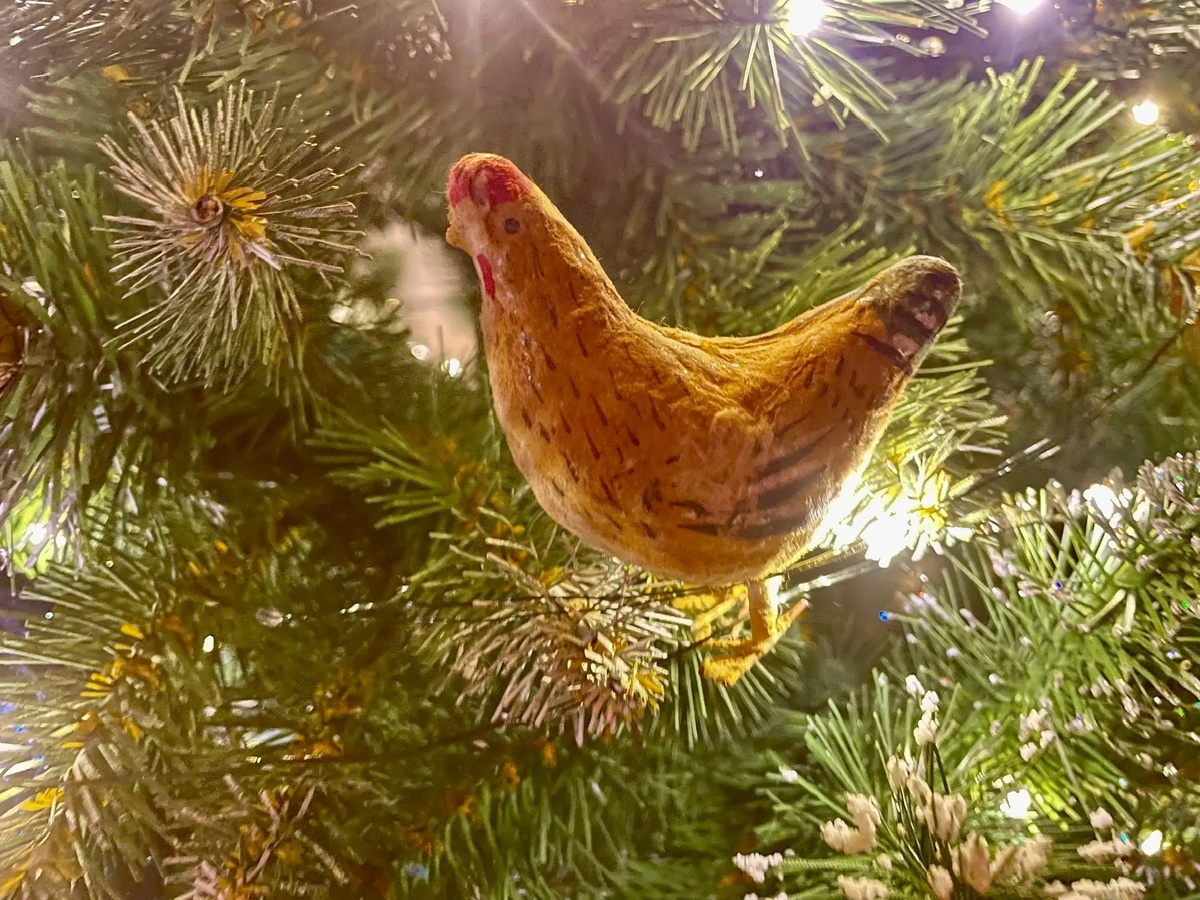 Наступает Новый год. Одна из традиций этого праздника – украшенная елка. Кто-то стремится нарядить елку согласно модным тенденциям, покупая яркие игрушки, которых, к счастью, в магазинах перед праздниками – большой выбор. А у многих сохранились елочные украшения родителей и бабушек. Помните, какое волшебство начиналось, когда с дальней полки доставалась коробка с нарядом для елки? И какой печалью становилась каждая разбитая нечаянно игрушка? Новогодние игрушки, как передовицы газет, передавали то, чем жил, чему радовался и о чем мечтал советский народ. Разглядывая уже наряженную елку, внимание привлекла старая игрушка в виде курочки из папье-маше, слегка потускневшая от времени. У курочки ярко-красный гребень и бородка, а также выразительные глаза. Ее тело окрашено в теплые оттенки коричневого и желтого цветов с черными полосками и пятнами, что придает ей реалистичный вид. Хвост окрашен в зеленый цвет, что добавляет контраста. Лапки курицы выполнены в виде тонких палочек, что подчерки