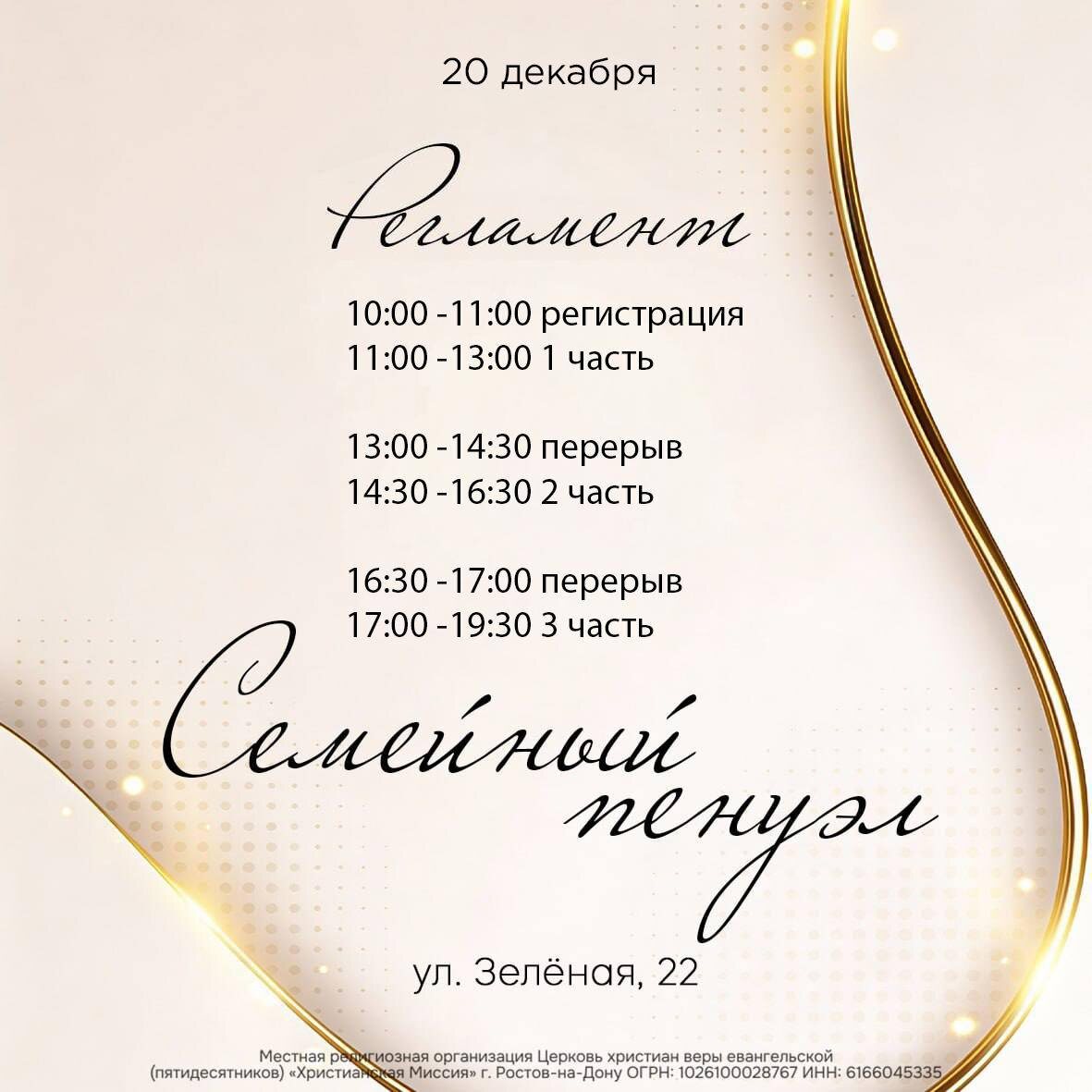 ! Напоминаем, что уже завтра состоится это особенное время для вашей семьи, которое будет наполнять сам Господь. Отправляем вам регламент, чтобы вы могли планировать своё время. ❤️