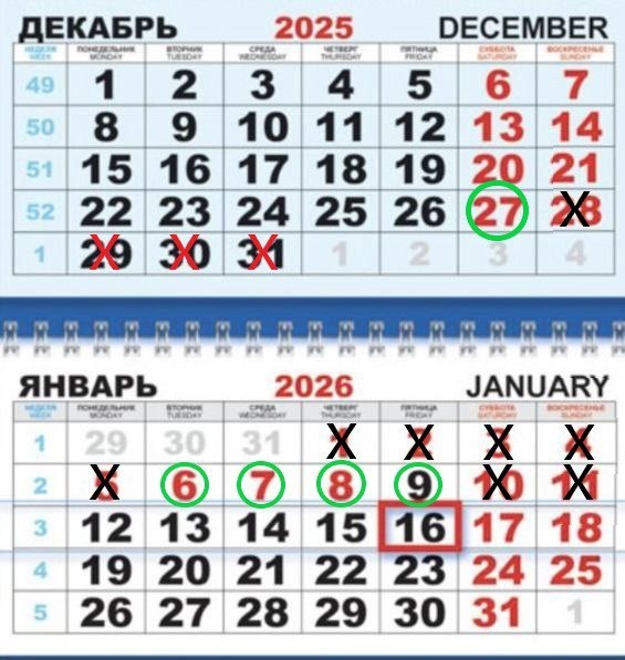 Поэтому мы работаем в штатном режиме с 06.01.2026 г. по 09.01.2026 г. Далее уже возвращаемся к своему графику с 12 января 2025 г.