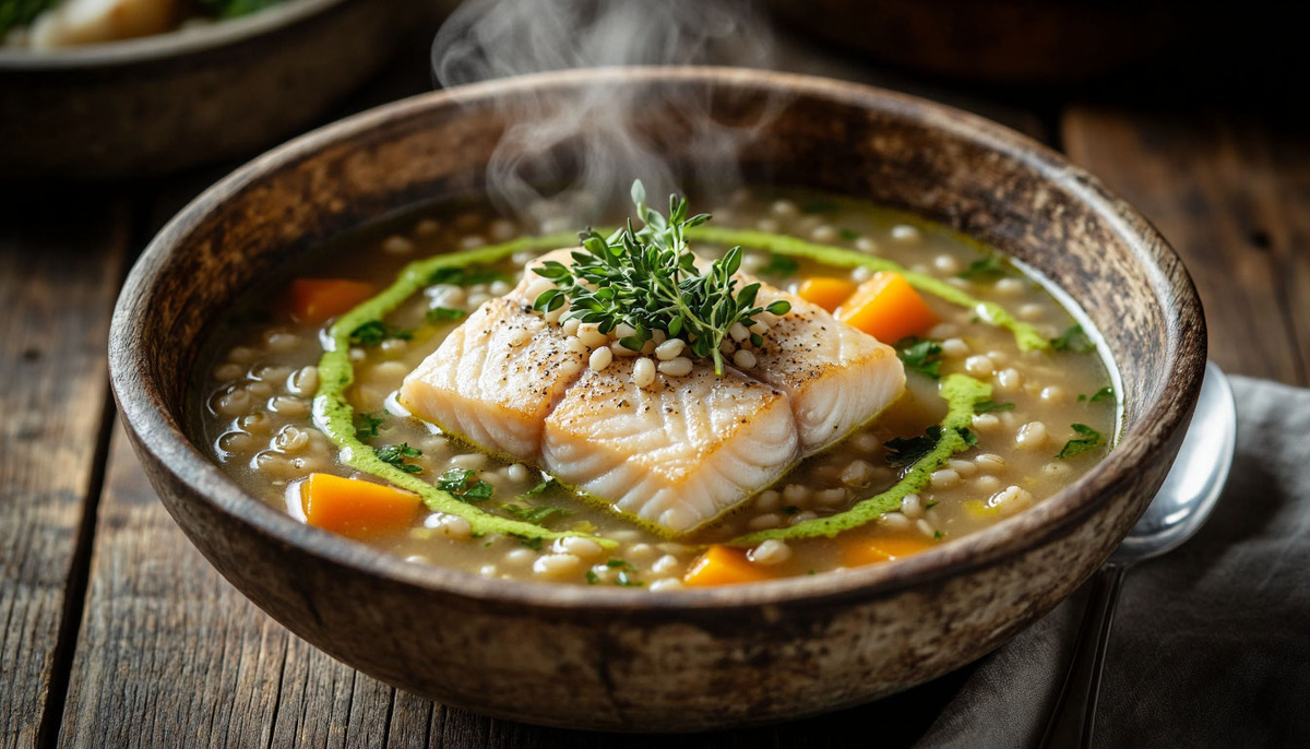 Привет, любители сытных обедов! 🍲🐟 Когда за окном метель, а градусник показывает минус, нет ничего лучше тарелки наваристого рыбного супа. Особенно если в нём — перловка: она придаёт блюду густоту, питательность и особый «домашний» шарм. Делимся