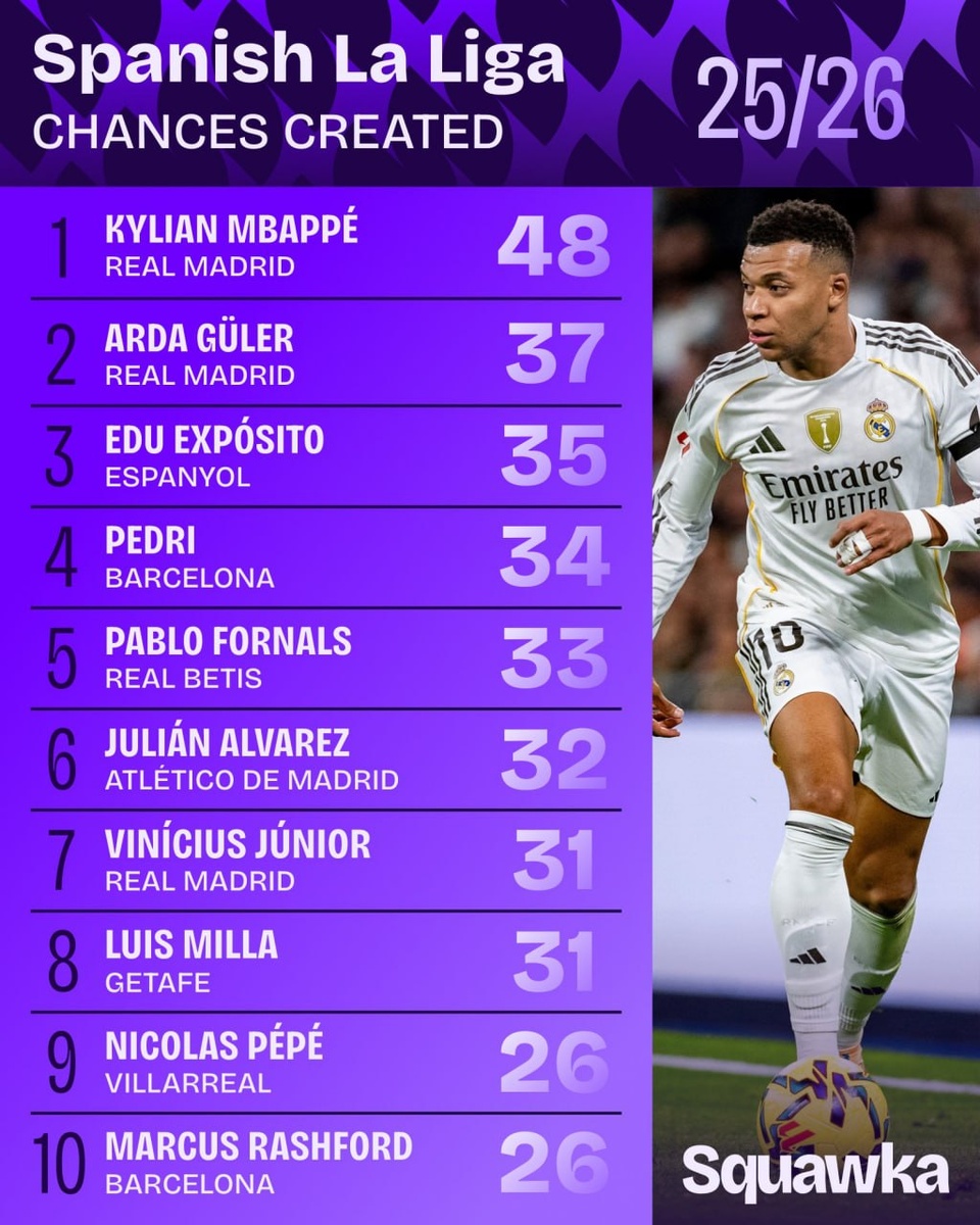 🇪🇸Лидеры по количеству ключевых передач в текущем розыгрыше LALIGA