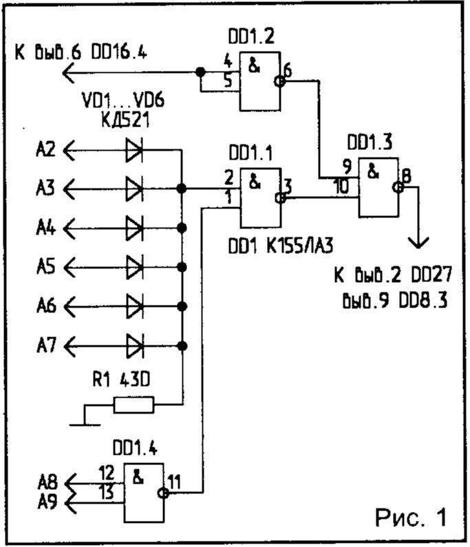 Всех приветствую! В журнале "Радиолюбитель" за 1998 год в номере 4 на странице 8 одним из читателей была предложена доработка по получению ОЗУ для пользователя в области портов F400-F600, а конкретно F404-F4FF, F504-F5FF и F604-F6FF. Дело в том, что архитектура компьютера "отобрала" этот диапазон у пользователя и размещать там какие-либо программы (например, драйвер печати, о котором говорит автор статьи) не представляется возможным. В публикации всё чётко и ясно описано, доработка мне показалась интересной, я решил доработать свой компьютер и заполучить дополнительные 756 байт ОЗУ. Рекомендую сперва прочитать публикацию. Схема дешифратора для выделения ОЗУ следующая: На основной плате необходимо сделать всего один разрез. Вот проводник, идущий на плате в нужном месте: Место разреза (дорожка режется со стороны монтажа) отмечено крестом. Плата Орион-512 ревизия 512.3. На схеме разрез выполняется здесь: Эта информация для тех, кто понял суть вопроса и не считает нужным обращаться к перио