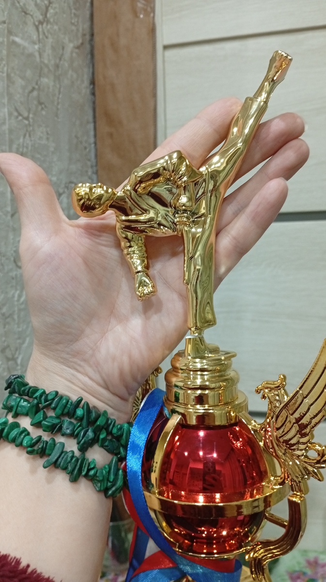 В Тайване завоевала ребёнок 3 место. Жаль в самолёте отломился каратист на кубке и теперь он у нас сидит на шагате. Чем его приклеить - не знаю. 🤷🏻♀️
