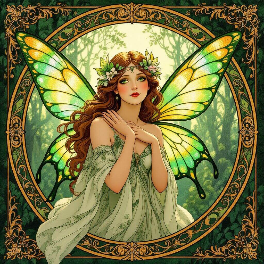 1. Органические формы и природные мотивы. В основе стиля — вдохновение природой: цветы, листья, виноградные лозы, насекомые (стрекозы, бабочки), птицы (павлины, ласточки) и женские фигуры с длинными струящимися волосами. Характерны «хлыстовые» линии — асимметричные, изогнутые, напоминающие стебли растений или волны.