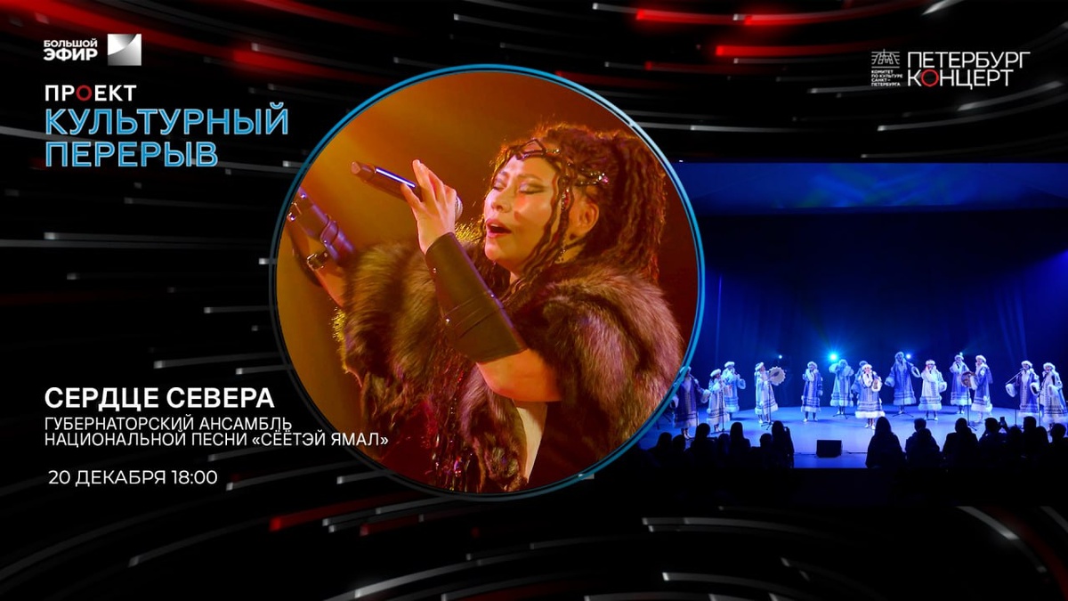 ». Мы отправимся в музыкальное путешествие по Ямалу — загадочной земле, хранящей древние традиции единения человека с природой. В программе примет участие автор и исполнительница песен на ненецком языке — Екатерина Салиндер. Ее вокальный стиль характеризуется синтезом старинных ненецких народных песен и современных музыкальных течений. Руководитель ансамбля «Сёётэй Ямал» — заслуженный работник культуры Ямала и лауреат премий Губернатора Ямало-Ненецкого автономного округа Севера — Диана Уколова. Прямой эфир телеканала доступен обладателям спутникового телевидения «Триколор», а также всем желающим по ссылке.
