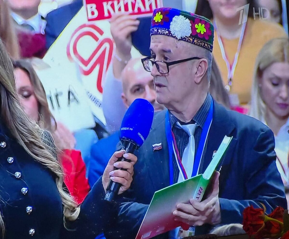 А теперь сектор-приз на барабане! Делегат от Таджикистана пытается подарить Путину книгу в лучших традициях «Поля чудес». Ждём, когда в ход наконец пойдут соленья. Викулин, где твои огурцы?