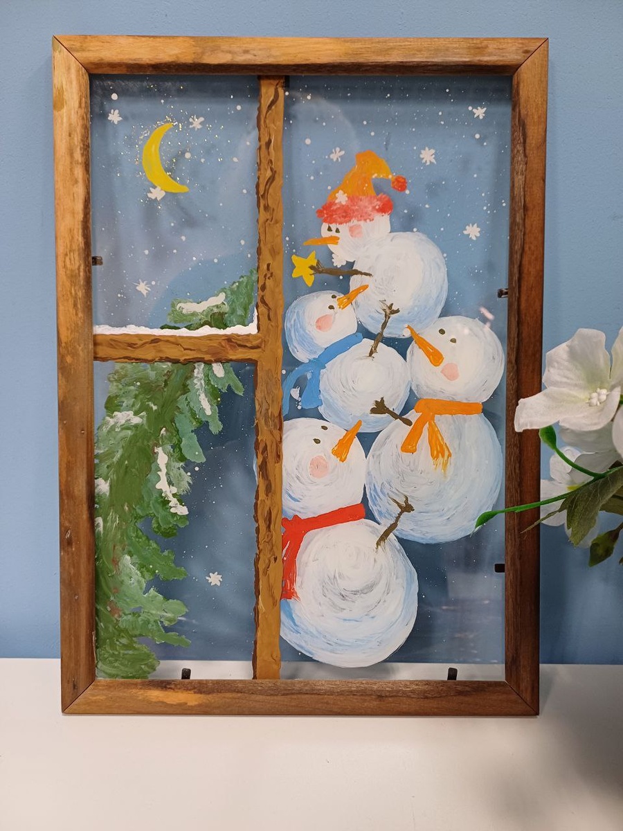 Рисуем на стекле: интерьерное панно «Новый Год глядит в окно» в Калининграде