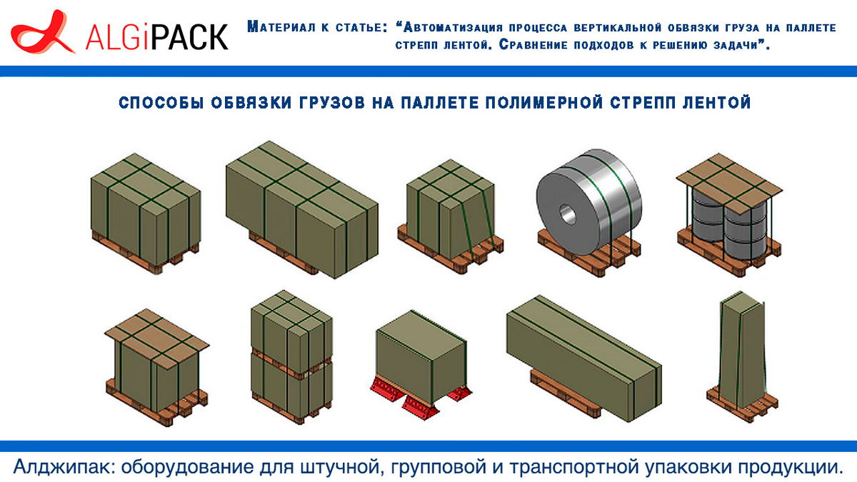 Общая ситуация: в настоящее время, процесс обвязки грузов на паллете полимерной стрепп лентой обеспечивается несколькими группами упаковочного оборудования.