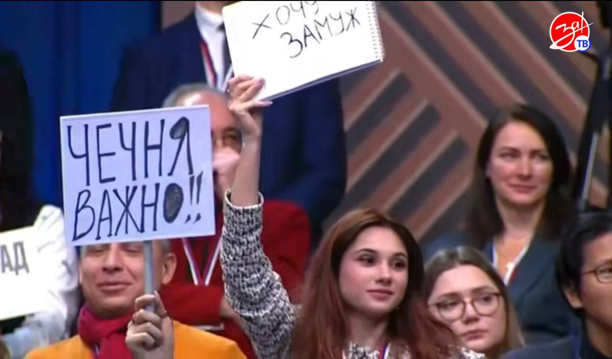 ❤️ Корреспондент «За!ТВ» Мирослава Бутенко, находящаяся в зале Гостевого двора, привлекла внимание камер табличкой с надписью «Хочу замуж».