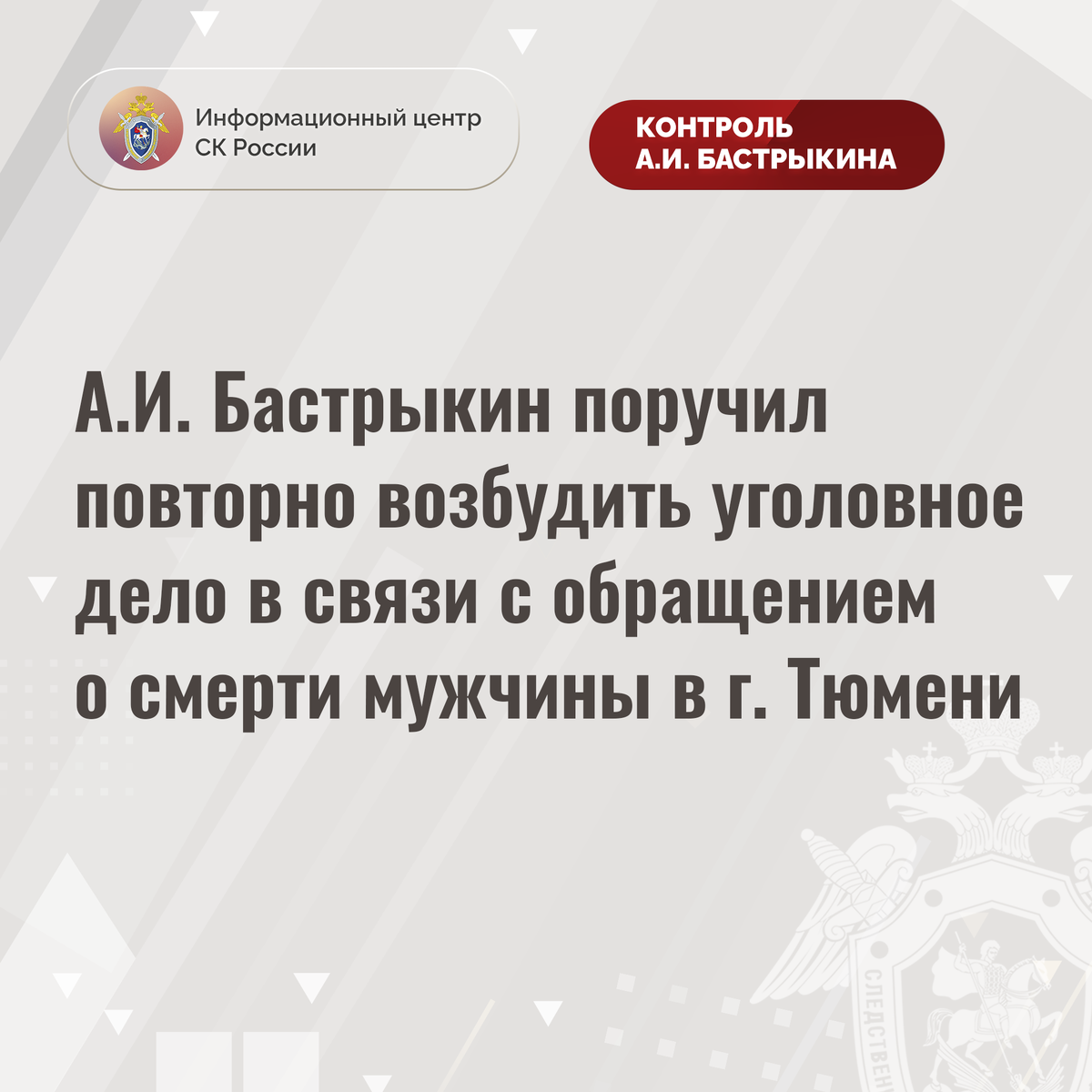 А.И. Бастрыкин поручил повторно возбудить уголовное дело в связи с обращением о смерти мужчины в г. Тюмени