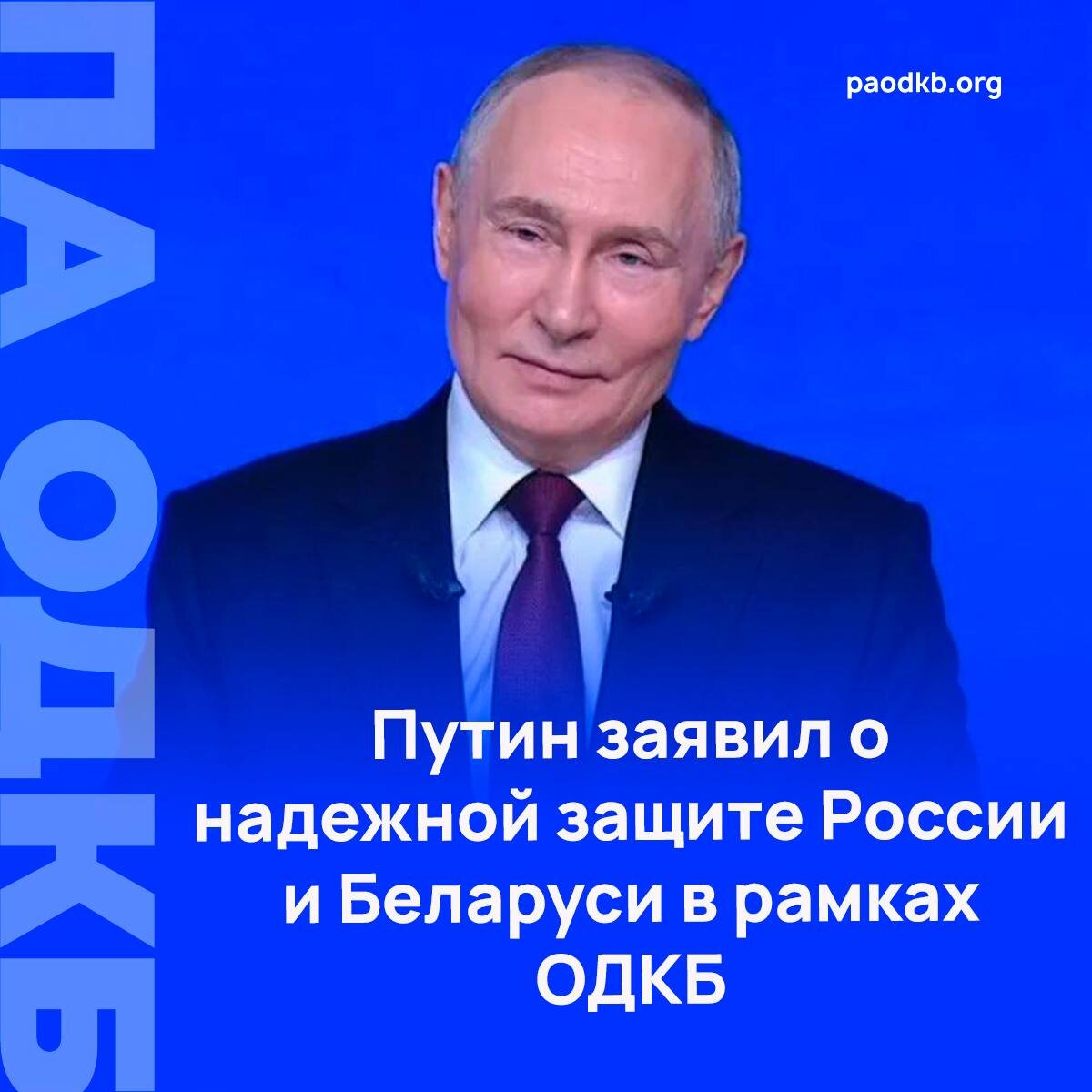 вопросы безопасности и в двустороннем порядке, и в рамках ОДКБ. 🇷🇺 🇧🇾 Президент России отметил, что Москва стремится к решению всех спорных вопросов мирным путем и поблагодарил Президента Республики Беларусь Александра Лукашенко за высокую оценку взаимодействия Москвы и Минска. «У нас регулярно проводятся учения, группа войск создана. <…> Безопасность Союзного государства находится в надежных руках наших военных и будет обеспечена», - подчеркнул Владимир Путин. 🔔 Напомним, с 1 января председательство в ОДКБ переходит к Российской Федерации. Как заявил российский лидер, оно будет проходить под девизом "Коллективная безопасность в многополярном мире: единая цель — общая ответственность". 🔴 Сайт 📱 VK 📱 Fb 📱 X 📱 Instagram 📱 dzen