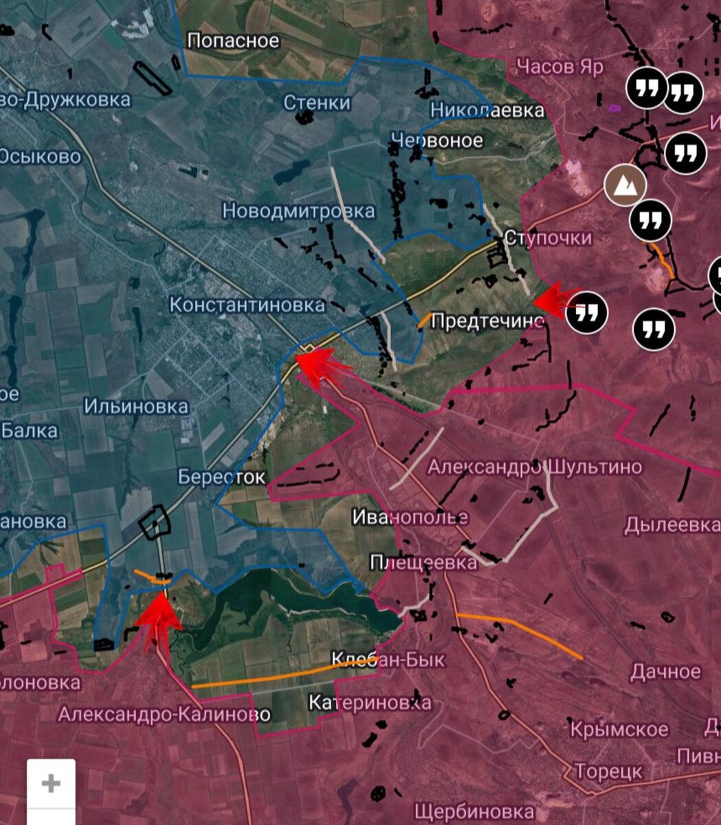 Обстановка на участке достаточно стабильная, особых рывков нашей армией не проводится, противник занял оборону, лишь изредка проводят накаты малыми группами. ▫️Все Предтечино ушло в серую зону, территория восточнее, где урочище Оськово, под нашим контролем. ▫️В самой Константиновке линия боевых действий фиксируется на перекрестке у ж/д вокзала. ▫️Южнее у Клебан-Быкского водохранилища небольшое продвижение западнее водоема, территория южнее водохранилища в серой зоне. ▫️ Дневник Десантника 📲 Дневник Десантника в МАХ