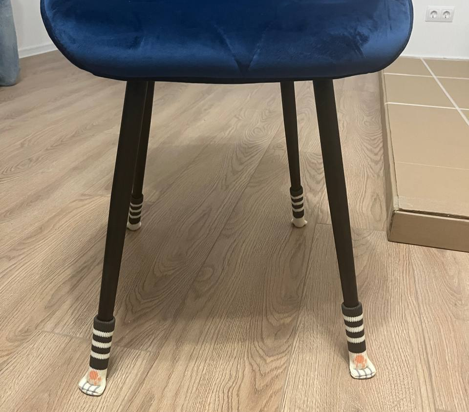 После переезда мы взялись обустраивать новую квартиру с утроенным рвением и трепетом, потому что до этого и я, и Леха жили в квартирах наших бабушек, где едва ли что переделаешь без ворчания родителей. И тут наконец-то мы сделали все по своему вкусу от лофтовой кухни до светлой (наконец-то!) мебели в комнате и черно-белой ванной. И хотя в целом мы пытались в каждой комнате выдержать определенный стиль, неугомонная я все равно везде внесла элементы (хаоса) уюта, накупив совершенно бесполезных мелочей, которые, конечно, на дизайнерскую замашку не тянут, но придают всему душевности и уюта. Они смешные и даже глупые, но нам нравятся) Решила ими поделиться, потому что уверена, что я не одна такая, кого такие мелочи порадуют) И как сувенир на праздники сгодятся. Итак: 1. Накладки на ножки стульев в виде шерстяных носочков с кошачьими лапками. Это протекторы, чтобы стулья не царапали пол и не издавали пр