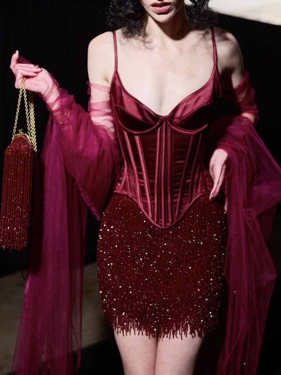 В мире вечерней моды есть палитра, которая всегда говорит громче остальных. Красный, бордовый и оттенки бургундии — цвета силы, глубины и уверенной женственности. Именно в этой гамме корсеты раскрываются особенно эффектно, превращаясь в главный акцент образа — как в новогоднюю ночь, так и далеко за её пределами. Красный — это энергия, праздник и смелость. Бордовый — благородство, глубина и зрелая элегантность. Бургундия — оттенок с характером, в котором сочетаются страсть и сдержанность. Эти цвета не требуют оправданий и всегда выглядят дорого. В корсетах они особенно выразительны: подчёркивают линии тела, добавляют образу уверенности и создают ощущение продуманной роскоши. Новогодняя ночь — время позволить себе больше, и корсет в красно-бордовой палитре идеально вписывается в это настроение. Он мгновенно собирает образ, создаёт эффект присутствия и притягивает взгляды без лишней демонстративности. Красные и бордовые корсеты одинаково хорошо работают как в минималистичных образах, так
