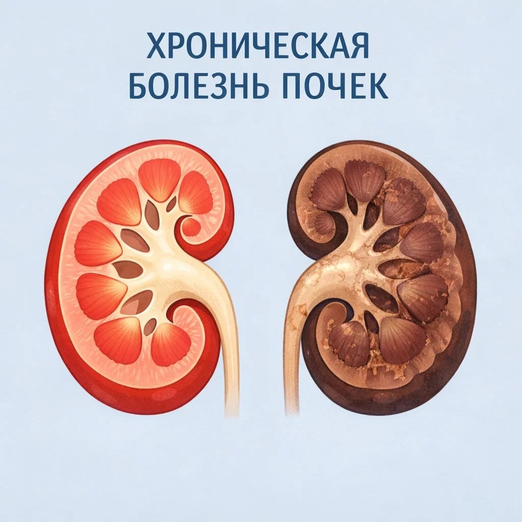 Хроническая болезнь почек редко начинается с боли Почки теряют функцию медленно Организм долго компенсирует — поэтому симптомы запаздывают ⏺️Как всё начинается Снижается фильтрация крови Токсины и лишняя жидкость выводятся хуже Нагрузка растёт годами, без резких сигналов ⏺️Почему её не замечают Почки не болят Отёки и слабость появляются поздно Первые стадии выявляют только по анализам 📊Цифры — ХБП есть у каждого 10 взрослого — более 90% не знают о диагнозе — диабет и гипертония — причина до 70% случаев — потеря функции начинается за 10–15 лет до симптомов ⏺️Что происходит дальше 🔢Падает скорость клубочковой фильтрации 🔢Накапливаются токсины 🔢Растёт давление и нагрузка на сердце 🔢Формируется почечная недостаточность ⏺️Главная ошибка Ждать боли или выраженных отёков Когда они появляются — функция уже сильно снижена Хроническая болезнь почек развивается тихо И требует внимания задолго до терминальных стадий