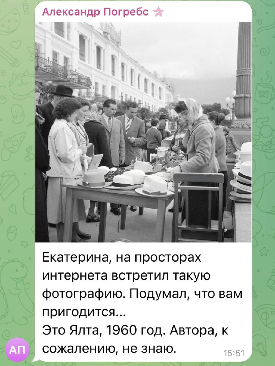🤩🤩🤩🤩🤩🤩🤩🤩 Посмотрите, какое фото мне прислал Александр! ❤️❤️❤️Что меня поразило, так это то, что и сейчас на этом месте проходит регулярно ярмарка крымских мастеров! А в 1960-м вероятно, что проходила выставка достижений ялтинских фабрик! На Чайной горке когда-то работала фабрика шляпок, и скорее всего, на первом плане шляпки ялтинского производства! ❤️❤️❤️Может кто-то что-то знает и добавит в комментариях нам информации ?) ❤️❤️❤️❤️❤️🤩🤩