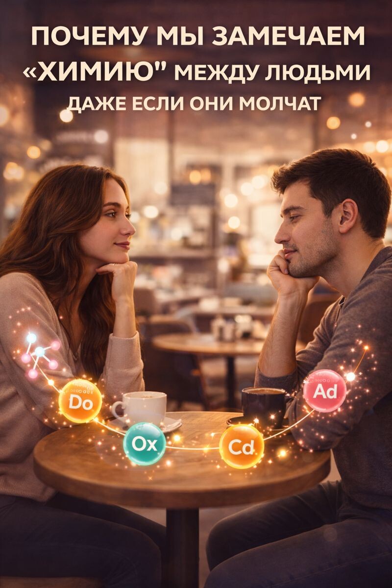 Пока люди молчат, он уже анализирует: Всё это происходит до осознанных мыслей. Невербальное общение: диалог, который невозможно отключить Даже в тишине тело «разговаривает»: 🔹 Что мы считываем автоматически: Если сигналы совпадают — мозг делает вывод: взаимный интерес возможен. Гормоны притяжения: химия в буквальном смысле Во время немого контакта активируются: Ирония в том, что тело уже всё решило, а разум ещё «думает». Почему окружающие видят химию раньше самих участников Синхронность движений и взглядов хорошо заметна со стороны.
