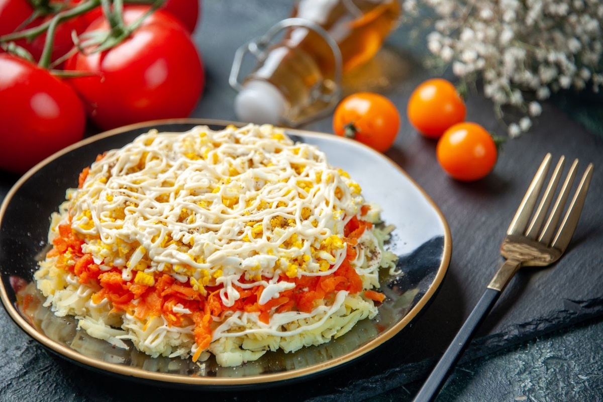 Он ценится за нежную структуру, воздушные слои и мягкий, сбалансированный вкус. Рыбная основа делает салат с сыром источником полезных белков и жирных кислот, а сочетание овощей и яиц придает питательность без чрезмерной тяжести. Многослойность позволяет регулировать насыщенность, а аромат свежих овощей дополняет общее впечатление легкой, домашней праздничной классики. Что берем: Как готовим: Салат Мимоза хорошо сочетается с рыбными закусками, легкими канапе и блюдами из птицы. Благодаря своей мягкости она уравновешивает более насыщенные и соленые позиции праздничного стола. Вас также могут заинтересовать другие рецепты салатов: