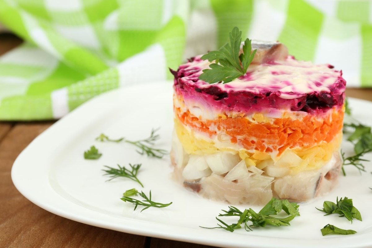 Этот рецепт остается одним из самых традиционных закусок новогоднего стола. В нем гармонично сочетаются нежность овощей, насыщенность сельди и характерная многослойная структура. Блюдо питательное, богато полезными жирами и витаминами, а также обладает выраженным, узнаваемым вкусом, который сложно заменить чем-то другим. Именно этот салат создает ощущение праздника и домашнего уюта. Что берем: Как готовим: Сельдь под шубой хорошо сочетается с мясными горячими блюдами, запеченными овощами и классическими новогодними закусками. Благодаря яркому вкусу она легко становится центральным элементом стола, а мягкая текстура уравновешивает более плотные и острые блюда. Вас также могут заинтересовать другие рецепты салатов: