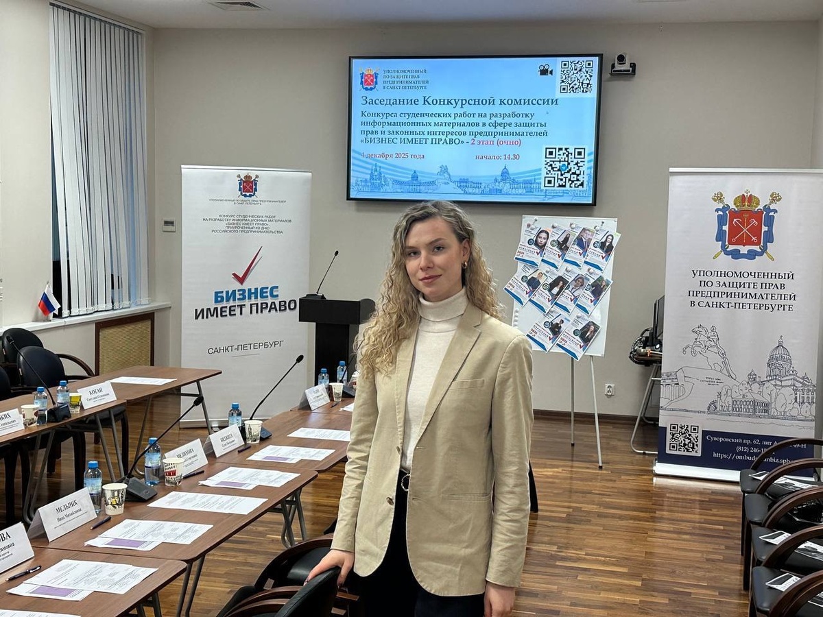 Студентка магистратуры кафедры экономики и финансов Санкт-Петербургского государственного университета промышленных технологий и дизайна, Дарья Маслацова вместе со своим научным руководителем - доцентом кафедры Елизаветой Крайкиной заняли третье место в конкурсе «Бизнес имеет право», организованном уполномоченным по защите прав предпринимателей в Санкт-Петербурге. Работа Дарьи посвящена актуальной проблеме размещения информационных конструкций на объектах культурного наследия. Разработка представляет собой подробную инструкцию, включающую пошаговые рекомендации по оформлению разрешительной документации, выбору месторасположения конструкции и согласованию всех необходимых документов с органами власти и культурными учреждениями города. «При подготовке своей работы я столкнулась с необходимостью глубокого изучения законодательства, регулирующего размещение информационных конструкций на объектах культурного наследия. Это позволило мне не только расширить профессиональные знания, но и осозн