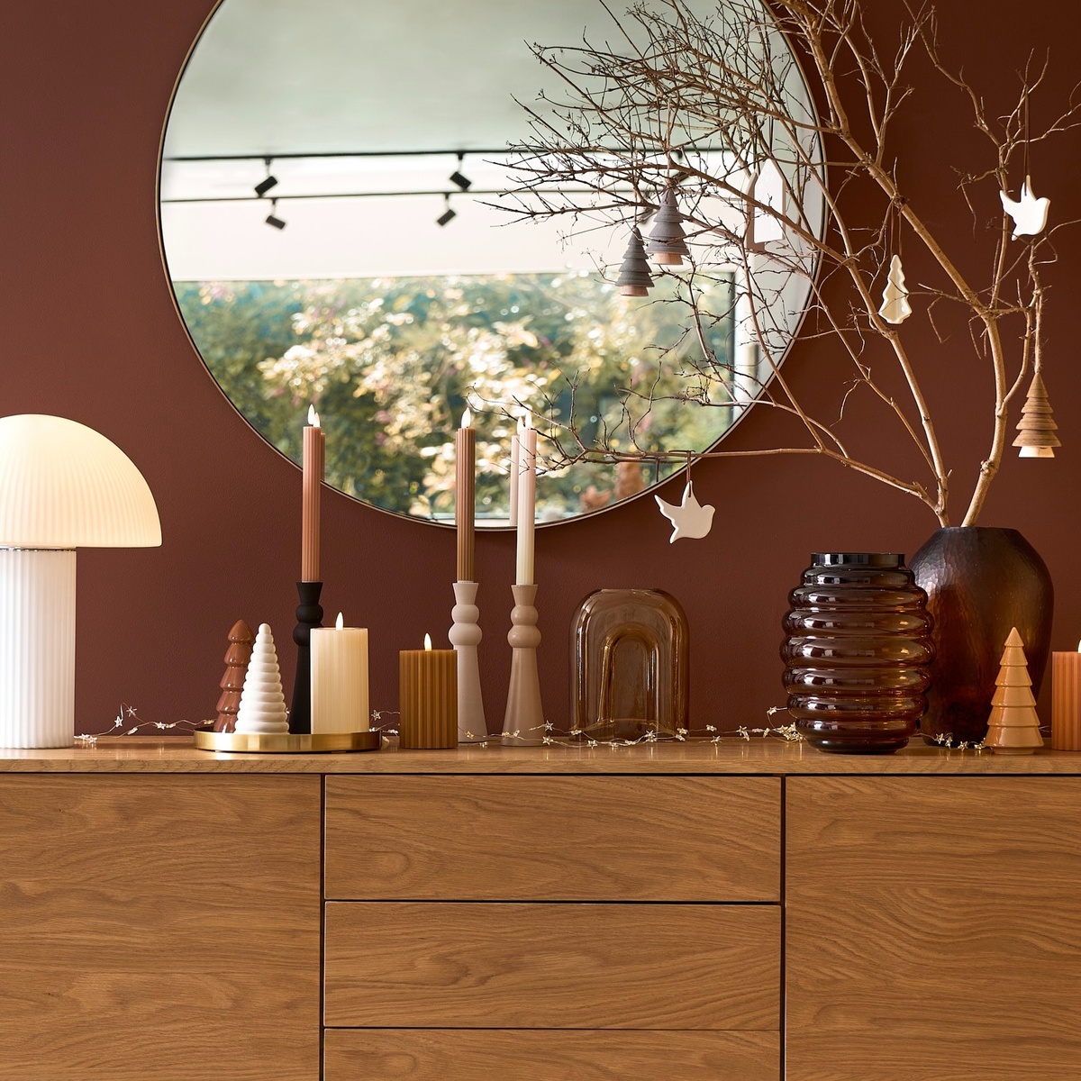 Особую атмосферу уюта перед праздником хочется создать в каждом уголке дома. Гирлянды и свечи — простые, но эффективные инструменты для преображения интерьера. В статье расскажем, как гармонично использовать их в интерьере, чтобы ваш дом заиграл новыми красками. Гирлянда-нить со звездами Свеча восковая светодиодная Базовый вариант для украшения — на окнах. Развесьте электрические гирлянды вдоль карниза или прямо на стеклах окон. Это не только красиво смотрится изнутри, но и привлекает внимание прохожих с улицы. Можно использовать и в качестве дополнительного освещения: гирлянды будут рассеивать мягкий свет. Для этого способа понадобиться гирлянда-нить с множеством светодиодов. Обмотайте спинку кровати или ручки шкафов, и обычная мебель приобретет праздничный вид. Работа кропотливая, но стоит того! Светодиодная гирлянда-нить Подойдет как обычная гирлянда, так и тонкая нить подходящего цвета. С помощью прозрачного скотча можно закрепить гирлянду на стене в виде любой формы: звезды или ел