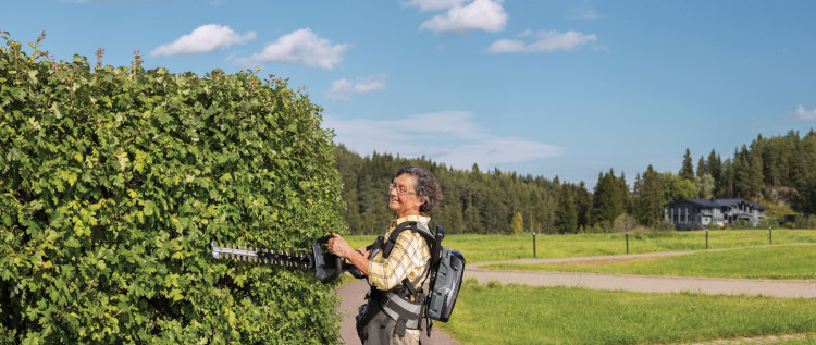 ● Штанговые кусторезы позволяют работать с высокими изгородями без перенапряжения или необходимости взбираться по лестницам, что делает обрезку более безопасной и удобной.