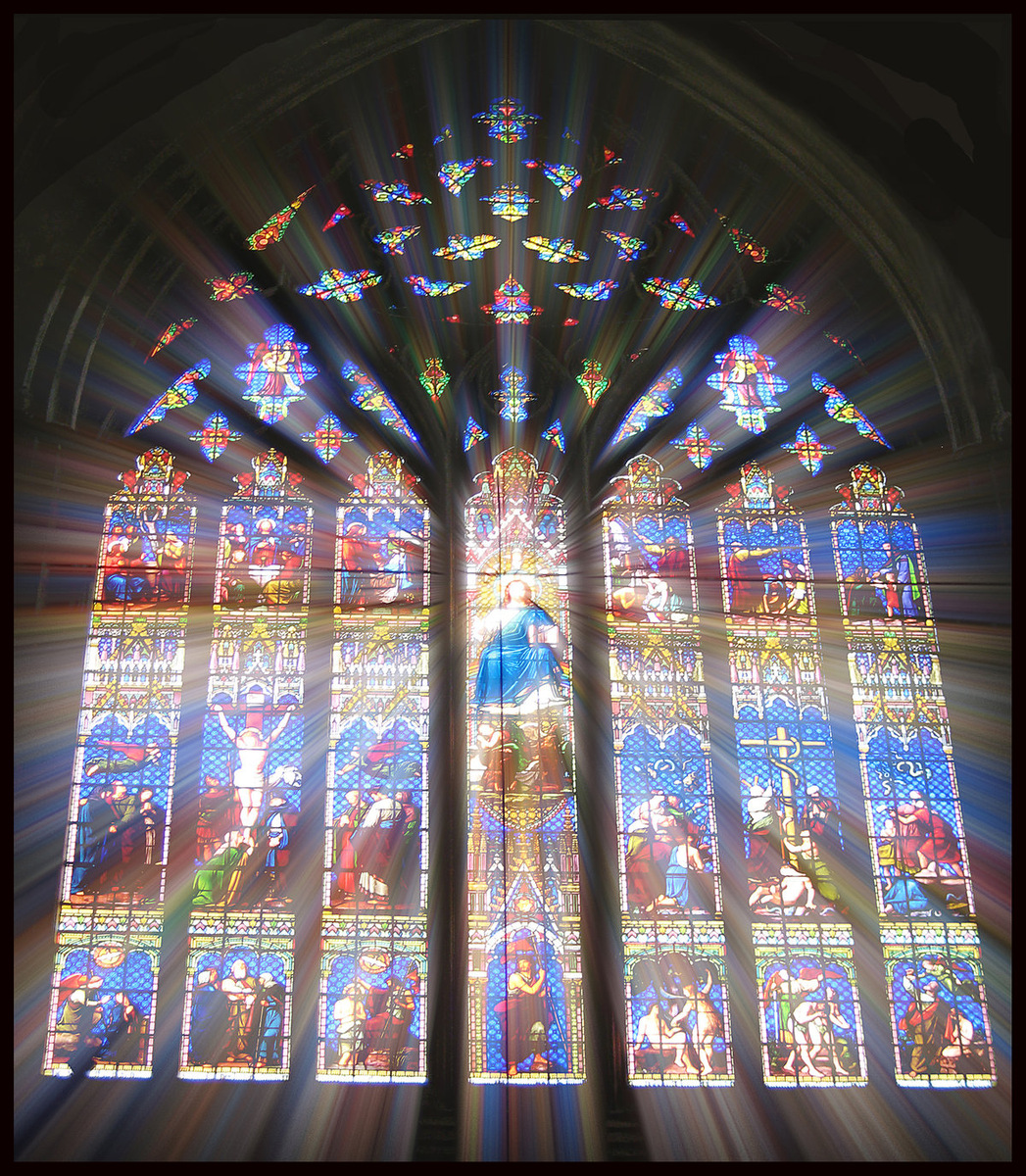 Средневековый человек грамотностью не владел, читать не умел и уж тем более не знал латынь, а именно латинский перевод Библии – Вульгата – использовался священнослужителями в средневековой Европе, поэтому библейские сцены на окнах и внутри собора это еще и возможность «чтения» Святого писания, это своеобразная иллюстрированная Библия.