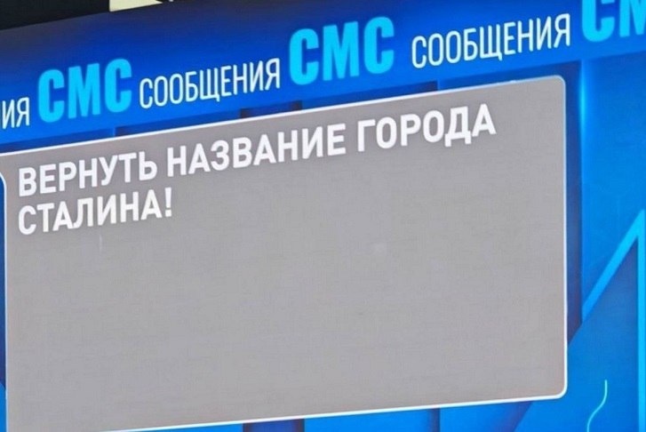 Вопрос о переименовании Сталинграда, хотя и не прозвучал в обычном формате на Прямой линии Путина, но все-таки в буквальном смысле слова промелькнул на экране, где транслировались многочисленные сообщения и вопросы, направленные главе государства в формате СМС. – Вернуть название городу Сталина! – написал неизвестный, и это сообщение появилось на главном экране. При этом и еще одно сообщение, показанное на экране, оказалось по теме Сталина. – Где душа Сталина – в аду или в раю? – гласил вопрос. Ни на один из этих двух вопросов Владимир Путин в прямом эфире не отвечал. Между тем, напомним, некоторые читатели ИА «Высота 102» предполагали, что вопрос о переименовании Волгограда в Сталинград может быть задан одним из волгоградских журналистов, которые сидели в зале и представляли регион. Однако волгоградцы по факту не озвучили ни одного вопроса. Новости «Высоты 102» в MAX В Волгограде сетевики отпустили цены на красную икру в свободное плавание Волгоградскому коммерсанут не удалось оспорит
