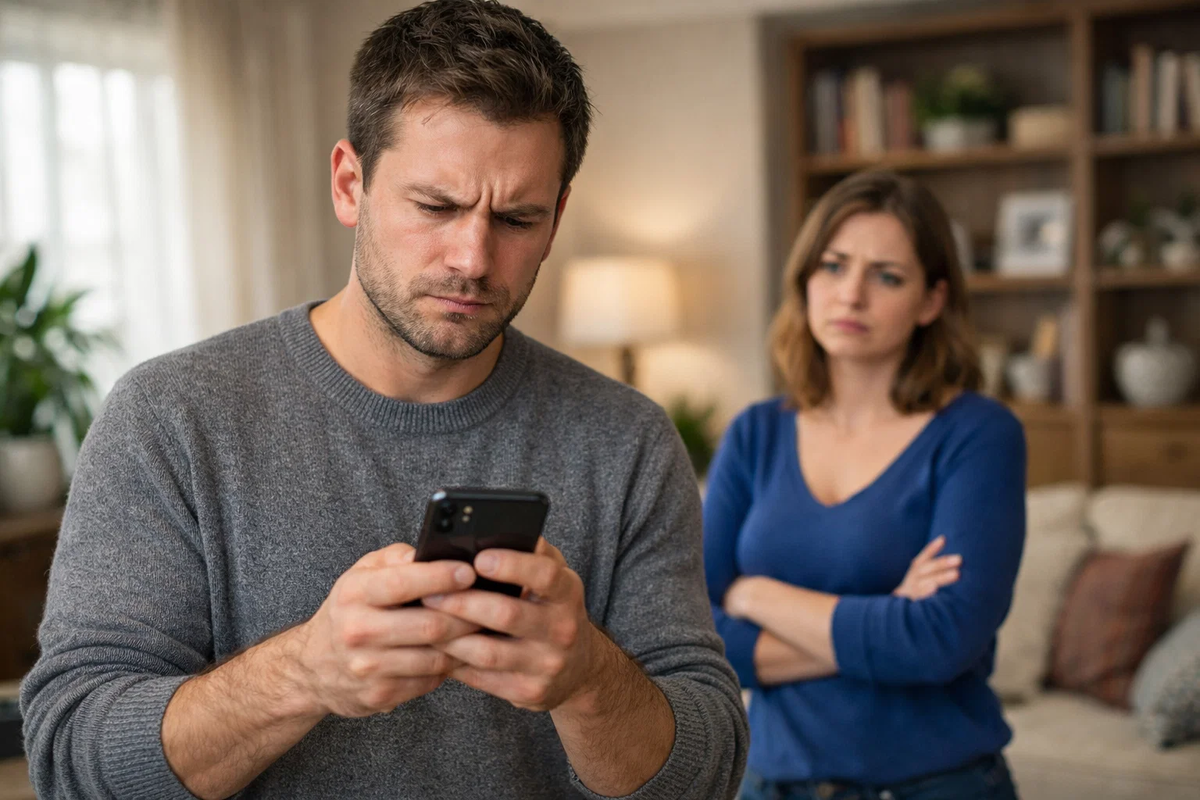 Она толкнула дверь резко, без стука. Денис обернулся, телефон всё ещё прижат к уху, лицо на мгновение застыло в маске испуга, которую он тут же попытался скрыть за улыбкой.